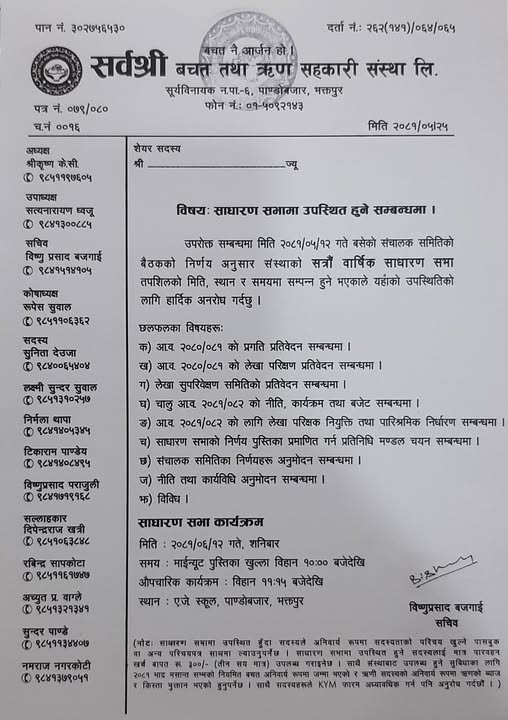Notice of Sadharan Sava